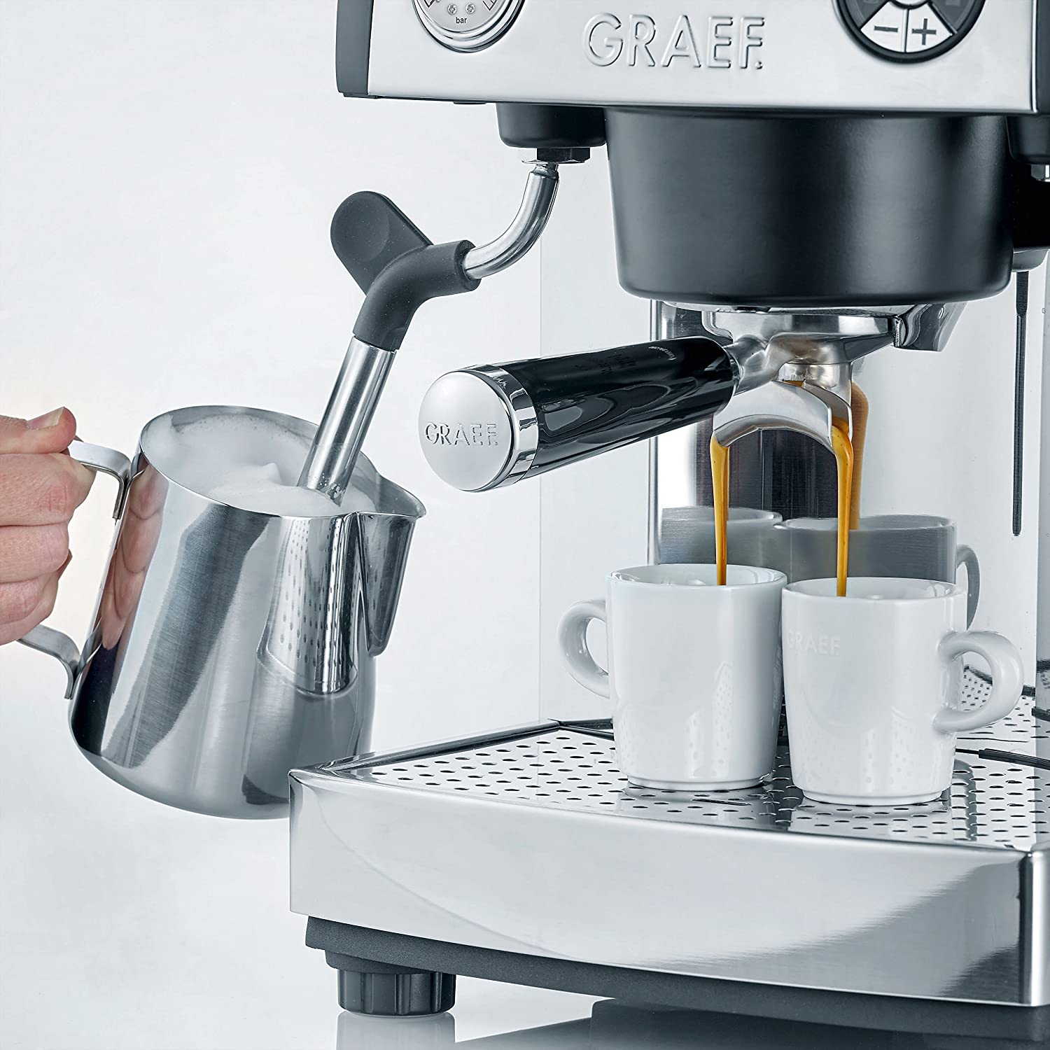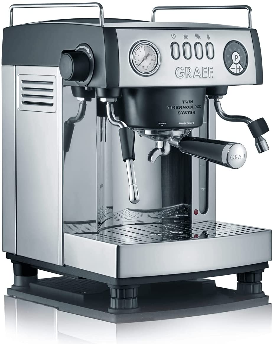 Domácí pákový kávovar od německé značky Graef, model 902 EU Baronessa. Má duální termoblok, který Vám umožní naráz připravovat kávu a šlehat mléko. Nahřátí kávovaru trvá doslova pár minut. S tryskou se dá manipulovat 360 stupňů, je zahnutá a vyšleháte s ní vždy dokonalou mléčnou pěnu s tlakem 6 bar.
