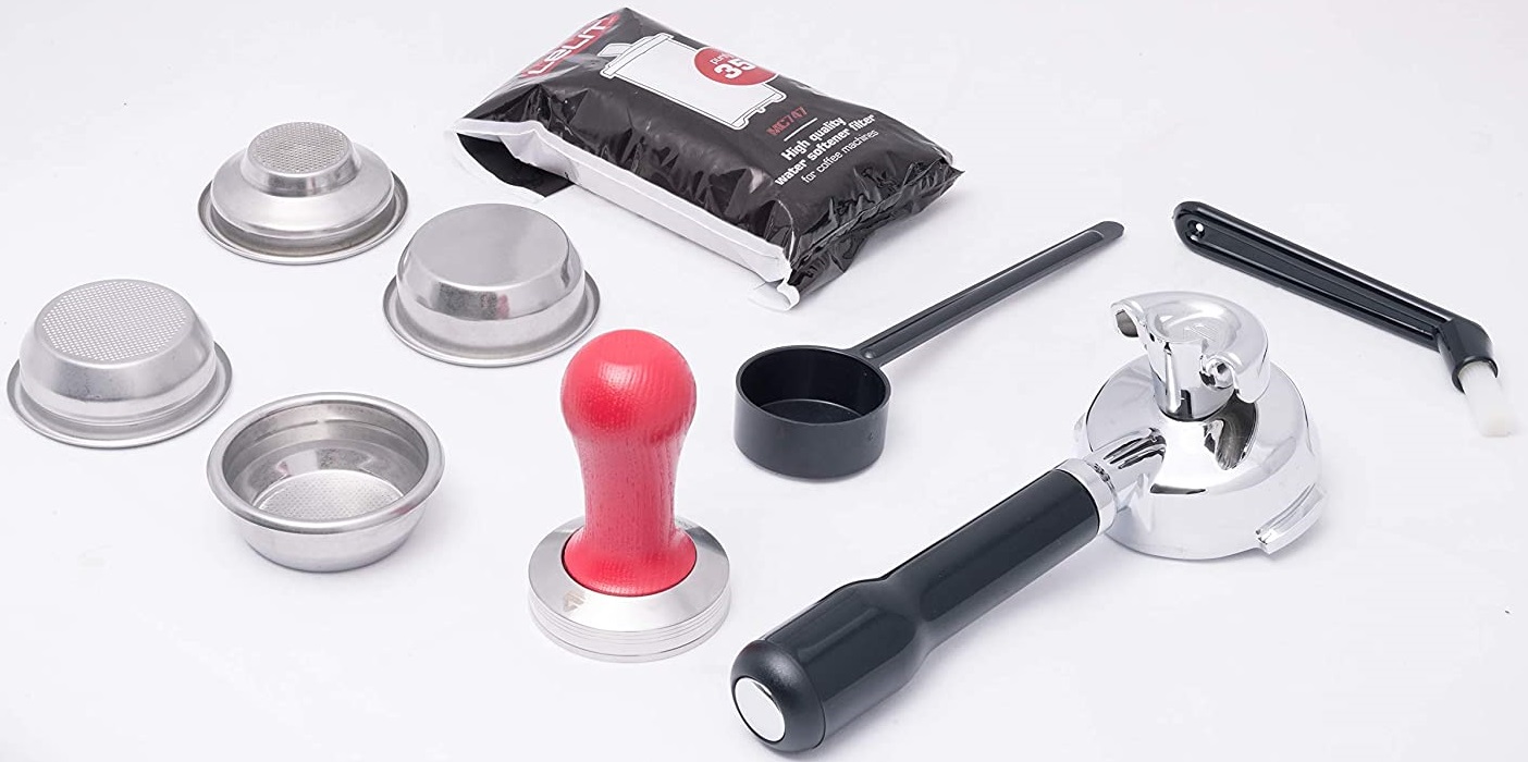 Páka portafiltr se sítkem na jedno espresso, páka se sítkem na dvě espressa, slepé sítko, manuál