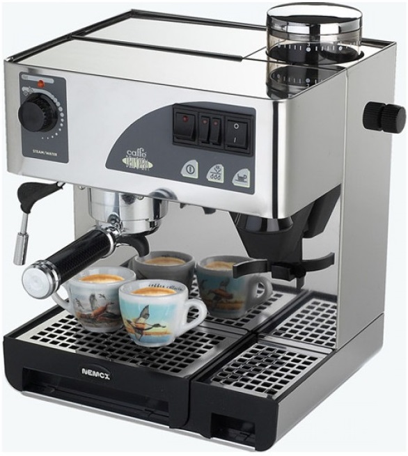 Profesionální jednopákový kávovar praktických rozměrů se zabudovaným kávomlýnkem s regulací hrubosti mletí.