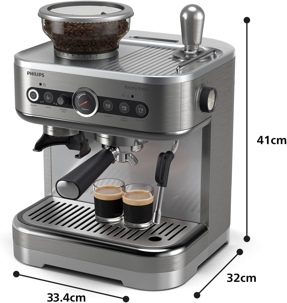 Philips Barista Brew PSA3218/01 poloautomatický kávovar, 58 mm portafilter, integrovaný mlýnek, PID, manometr, nerez – stříbrný