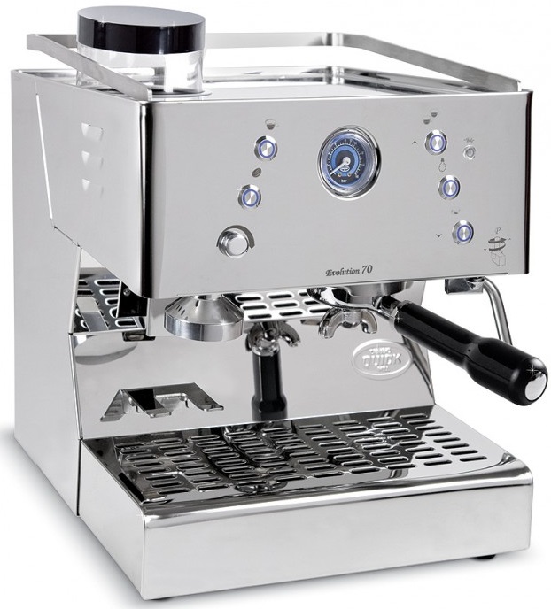 kávovar QuickMill 1 pákový profesionální kávovar se zabudovaným mlýnkem. Automatické dávkování kávy. Celokovový RETRO styl kávovaru.