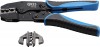 Kompletní se 2 vyměnitelnými vložkami lisovacích profilů pro: izolovaná kabelová oka 0,5 - 6 mm² se symetrickým oválným lisováním (červeno-modro-žlutá)