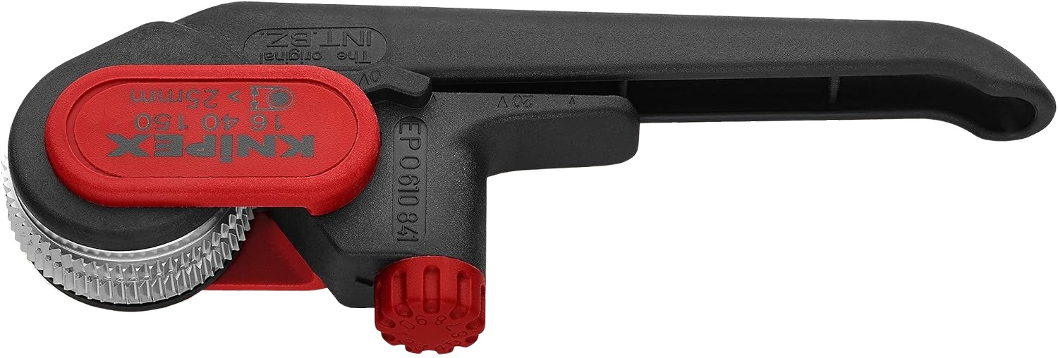 K odstraňování plášťů kabelů kruhového průřezu od 25,0 mm. Odstraňuje všechny vrstvy izolace. Vhodné pro obvodový a podélný řez. Hloubka řezu nastavitelná do 5,0 mm. Výměnná čepel (oboustranně použitelná). Těleso nástroje: plast, vyztužen optickými vlákny