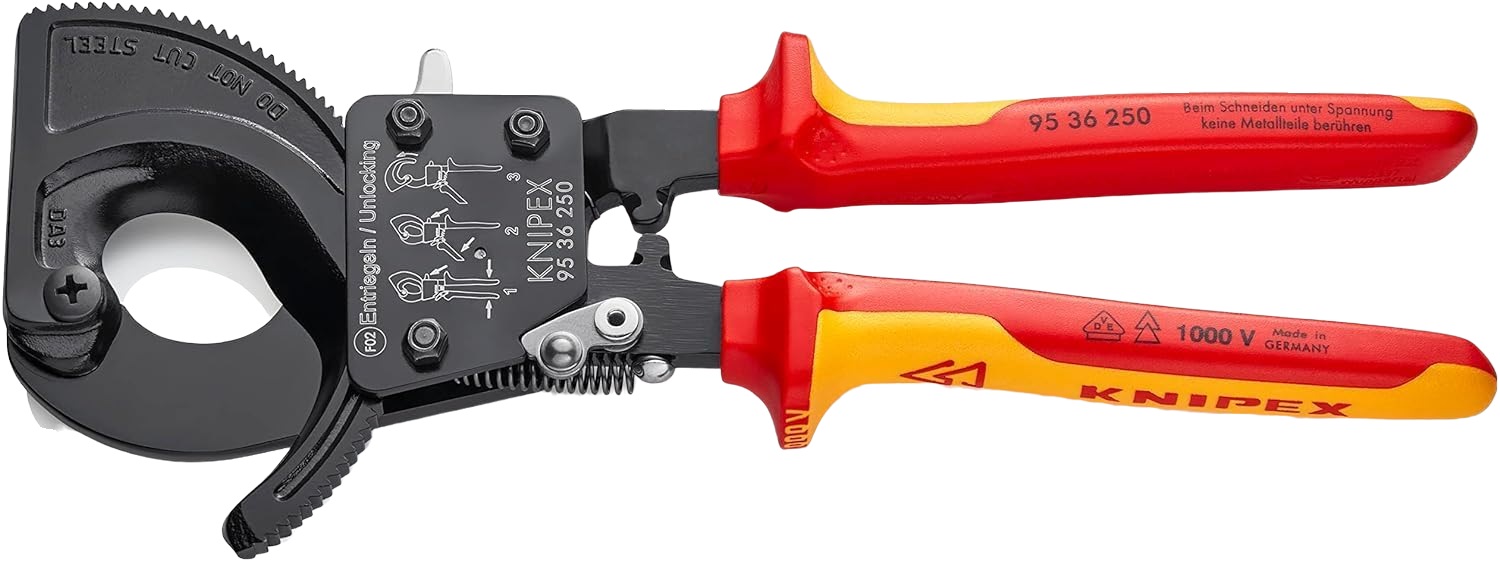 1x Knipex 95 36 250 ráčnové nůžky na kabely do 1000 V