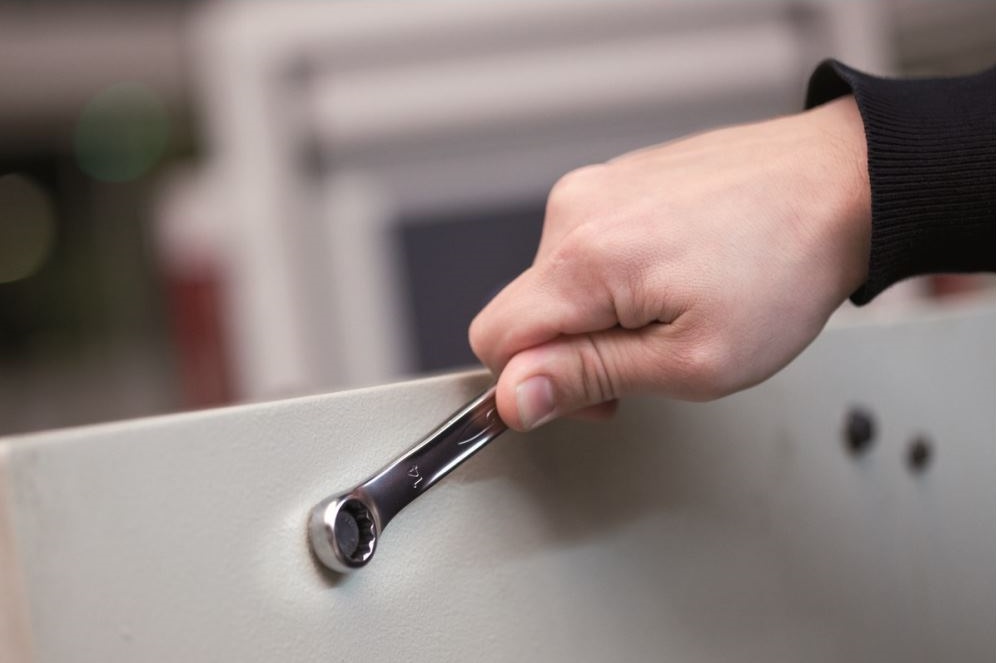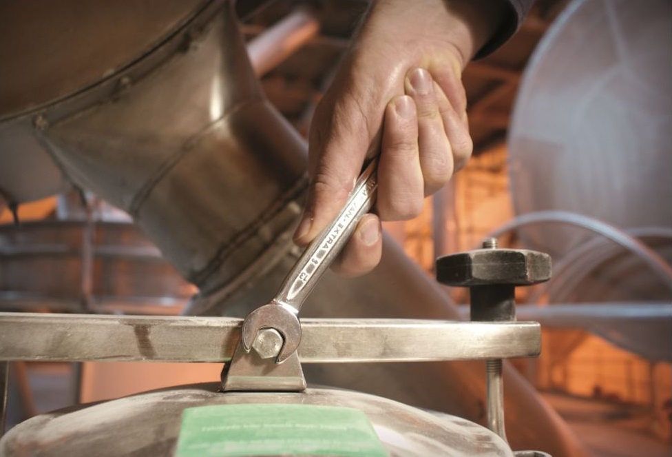 Otevřený klíč s úhlem 15°, očkový klíč vyhnutý o 15° , oba konce se stejným rozměrem klíče, krátký typ.