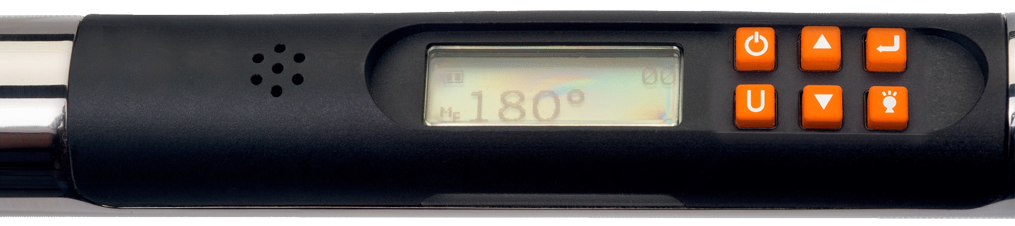 Hodnoty momentu v Nm, kg.cm, dNm, ft.lb, lb.in (cNm a in.oz v závislosti na rozsahu) a hodnoty úhlu ve stupních.