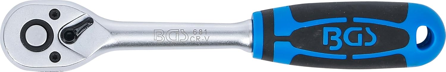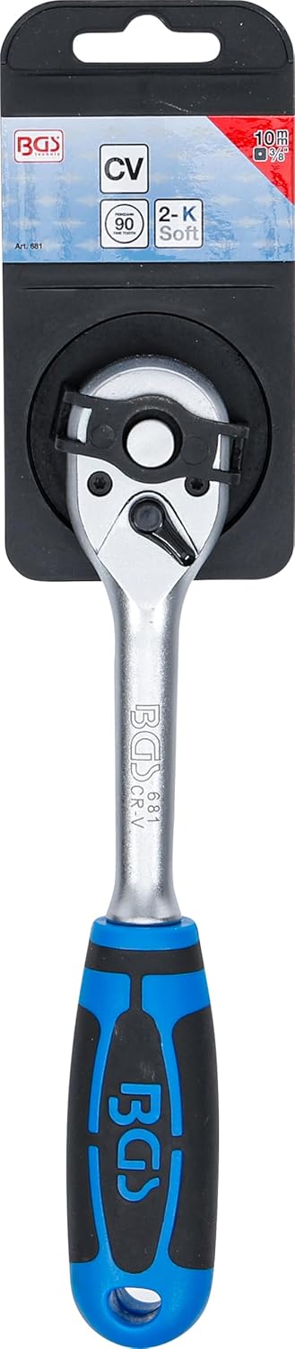 Přepínací ráčna BGS 681 v rovném provedení nabízí přesnou kontrolu, jemné ozubení se 90 zuby a spolehlivý chod.