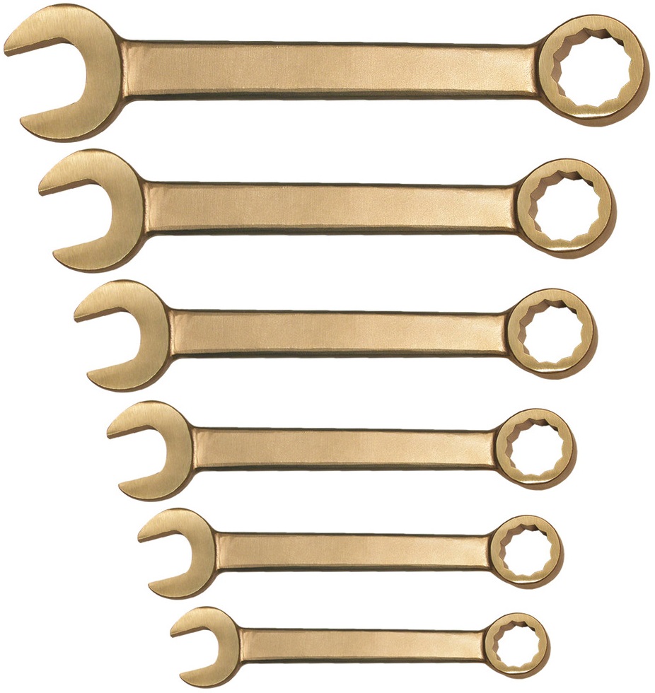 Sada očkoplochých klíčů Gedore 0130000S je určena pro bezpečné použití v prostředí s nebezpečím výbuchu. Díky výrobě ze speciální bronzové slitiny jsou klíče certifikovány jako nejiskřivé (ATEX), což zajišťuje jejich využití v petrochemickém, těžebním, plynárenském a chemickém průmyslu.