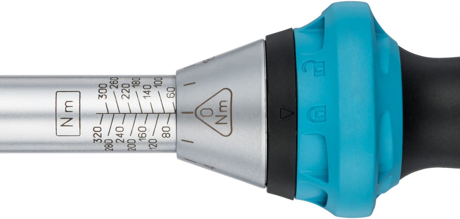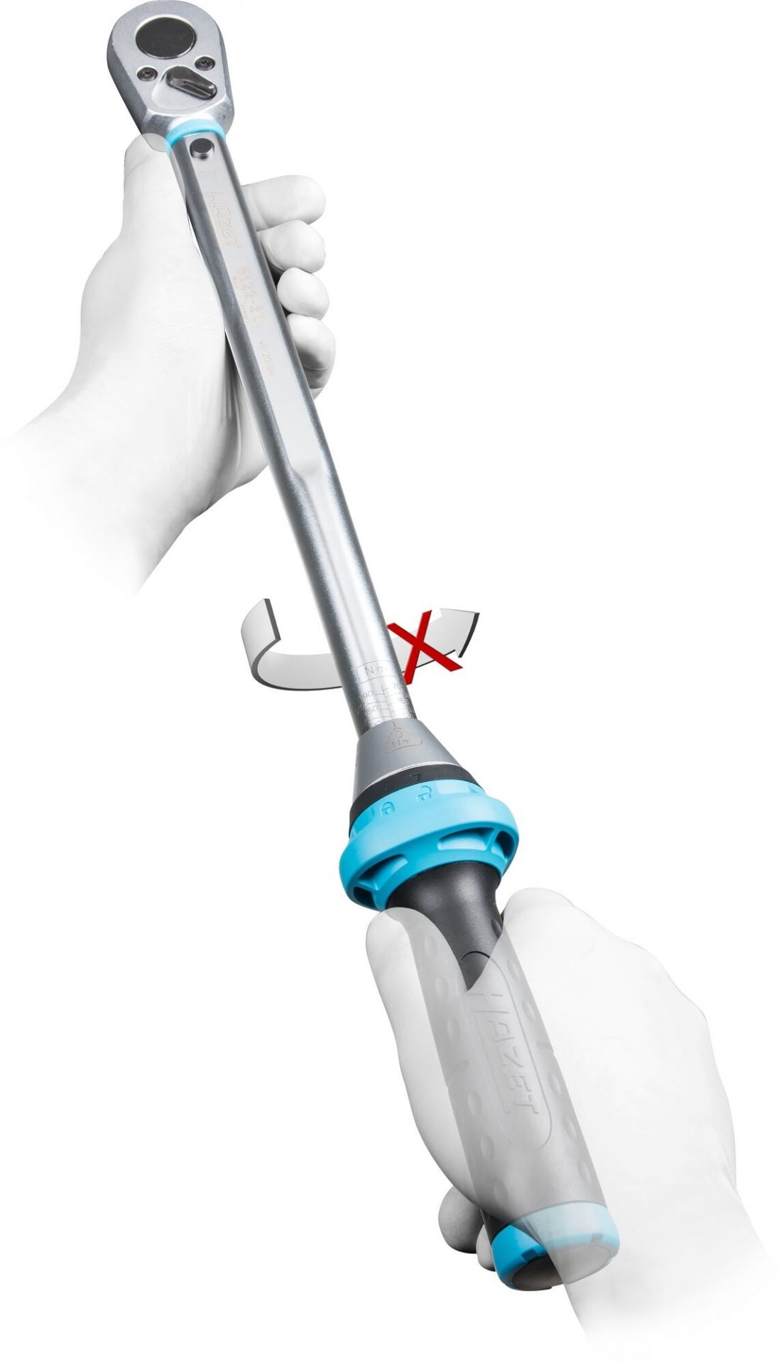 Překlikový momentový klíč Hazet 60-320Nm s ráčnou 1/2" je vybaven bezpečnostní pojistkou proti neúmyslnému přenastavení momentu