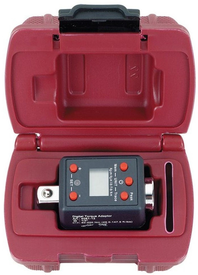 Elektronický HIGHTECH momentový adaptér použitelný s různými druhy utahovacího nářadí, např. s běžnými přepínacími ráčnami