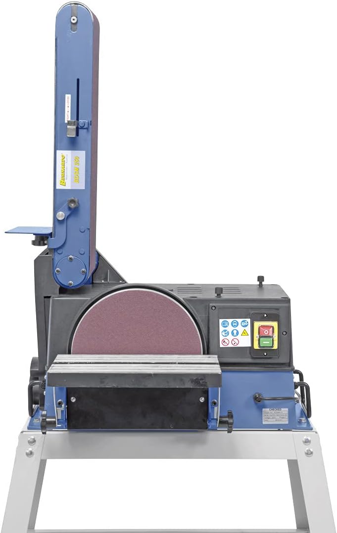 Tato šikovná a multifunkční kombinace pásu a brusného kotouče dokáže splnit téměř jakékoliv Vaše očekávání. Pásová bruska může být přestavena z vodorovné do svislé pozice. Brusný stůl (u kotouče) je naklápěcí do -45°, může být použit jak pro pásové, tak pro čelní smirkování. Díky křížovým zarážkám může být přesně nastaven jakýkoliv úhel.