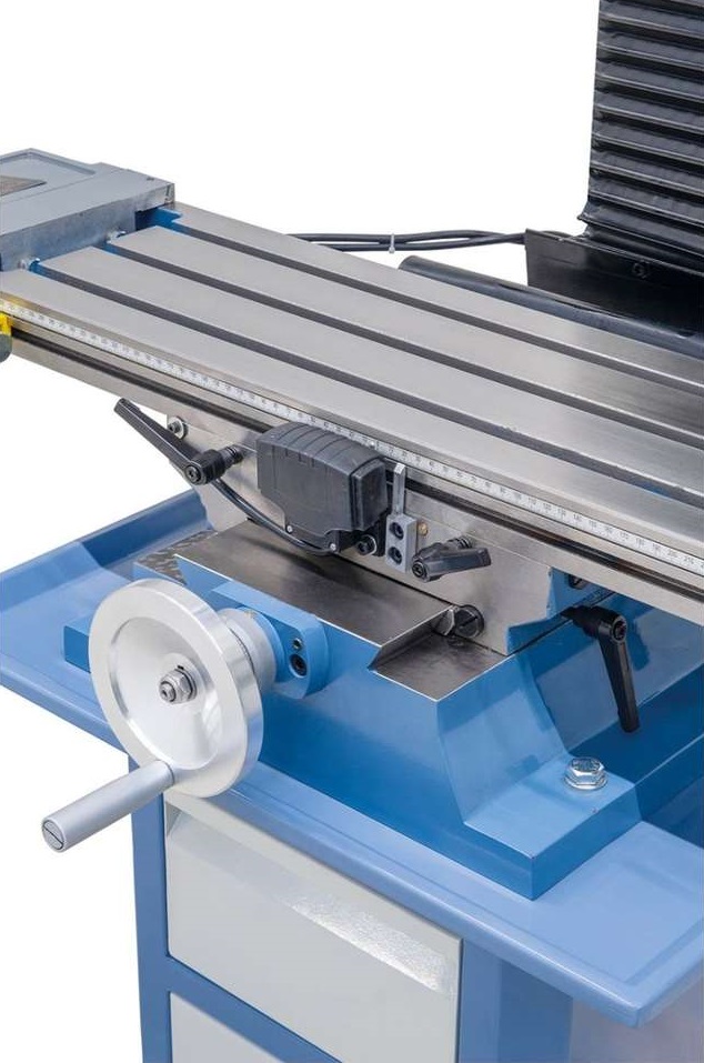 Další vývoj osvědčeného modelu KF 25 Vario nabízí standardně zvětšené uchycení vřetena, větší frézovací stůl a 2 digitální displeje pro rychlost (50 - 3000 ot/min) a zdvih vřetena