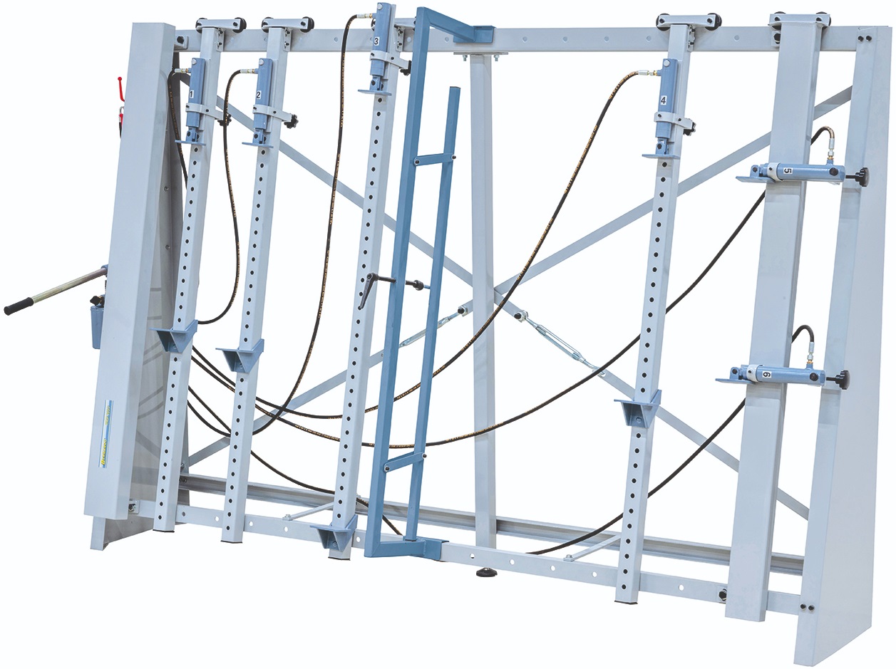 4x pohyblivý přítlačný nosník s vertikálním hydraulickým válcem
