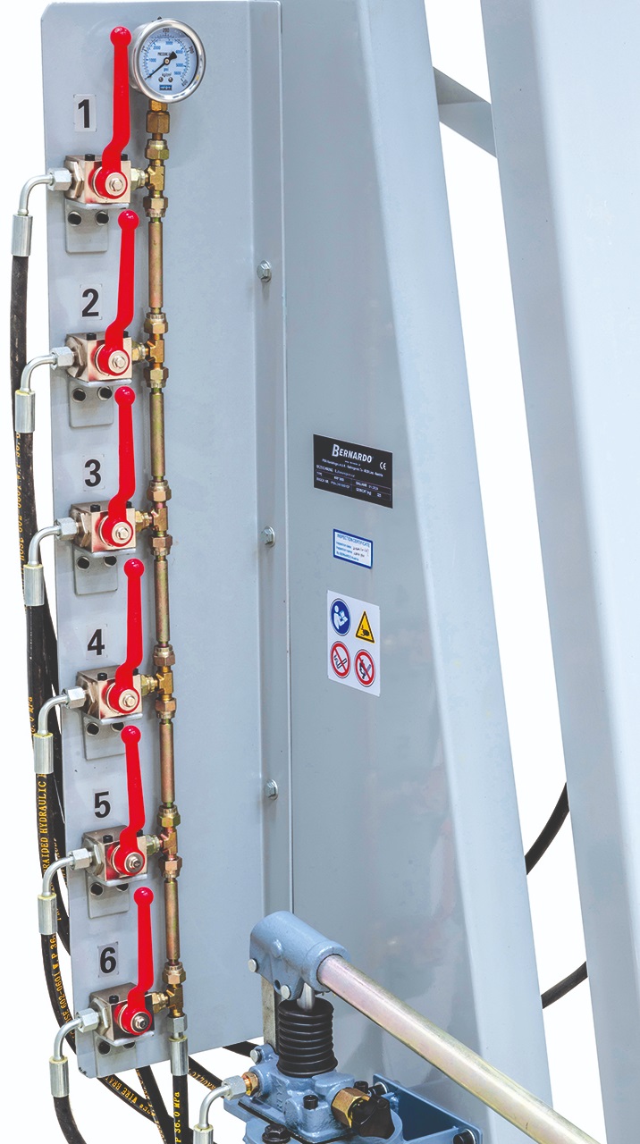 Centrální ovládání s manometrem umožňuje přesnou kontrolu lisovacího tlaku