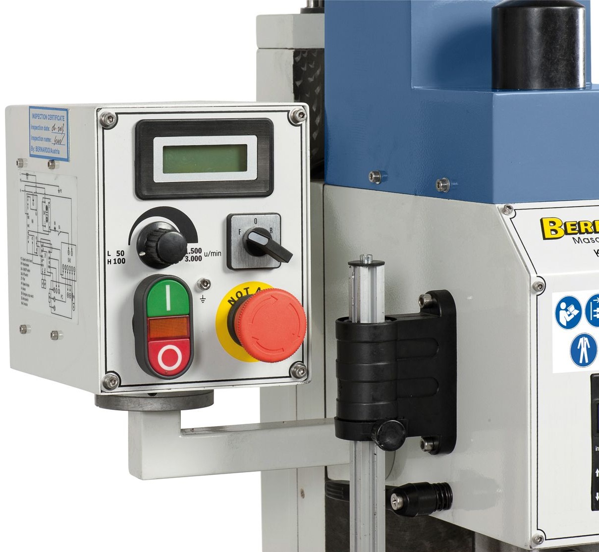 Vrtačko-frézka Bernardo KF 25 Pro je robustní a univerzální stroj určený pro přesné vrtání a frézování. Díky výkonnému motoru, digitálnímu zobrazení otáček i hloubky vrtání a oboustranně výkyvné frézovací hlavě poskytuje široké možnosti využití. Stabilní konstrukce s rybinovým vedením a kuželíkovými ložisky zajišťuje přesnost, dlouhou životnost a komfortní obsluhu.
