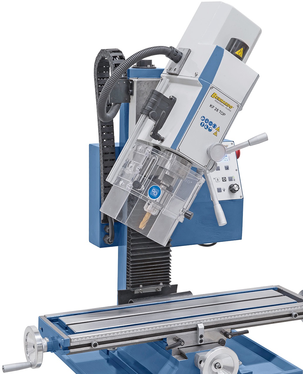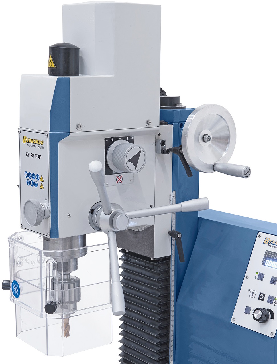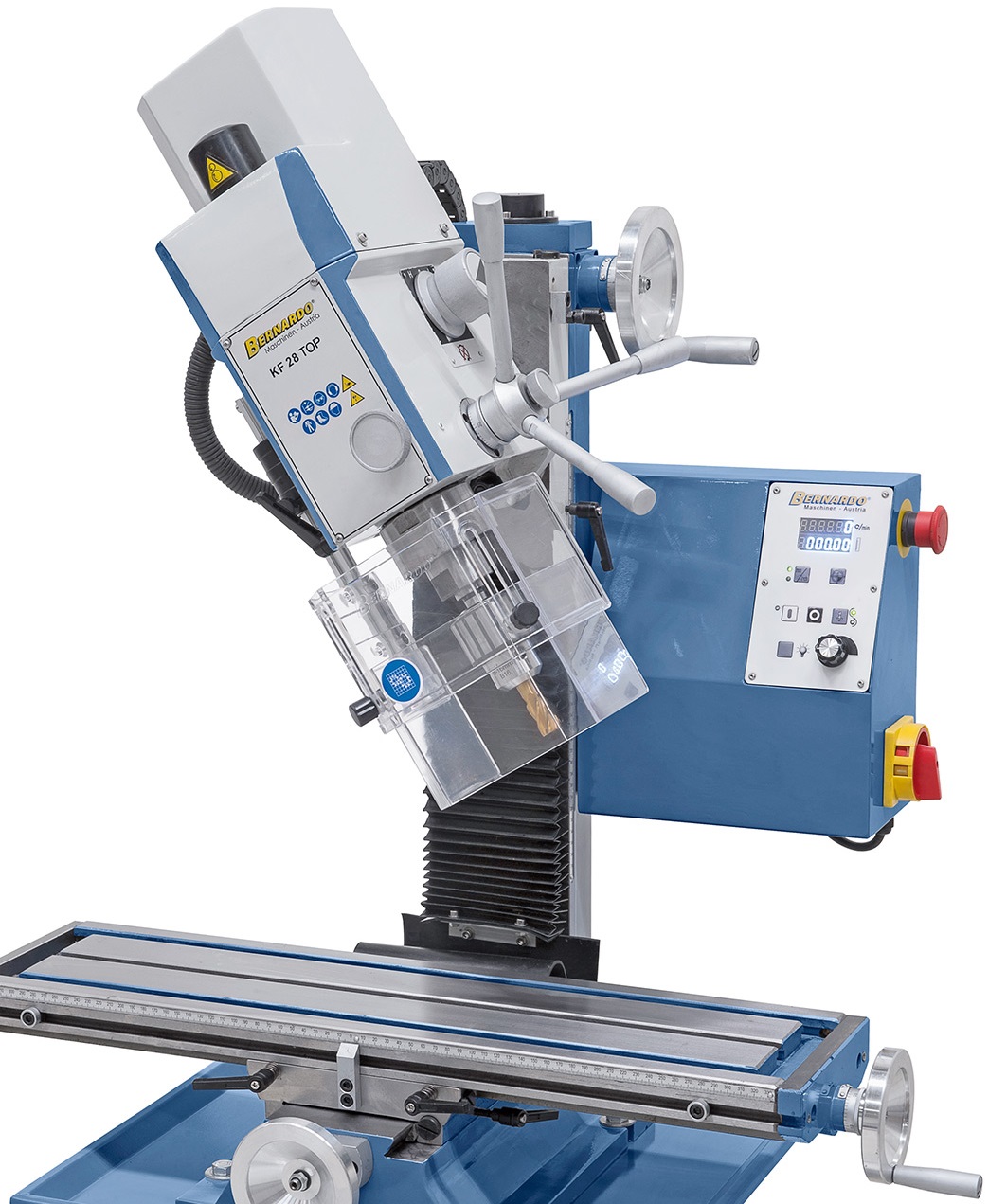 Vrtačko-frézka Bernardo KF 28 Top je určena pro profesionální uživatele, modeláře a vzdělávací zařízení. Díky výkonnému stejnosměrnému motoru s plynule nastavitelnými otáčkami a pevné konstrukci nabízí univerzální využití při frézování i vrtání. Stroj je vybaven naklápěcí hlavou, křížovým stolem s T-drážkami a vysokou přesností díky uložení pinoly v kuželíkových ložiskách.