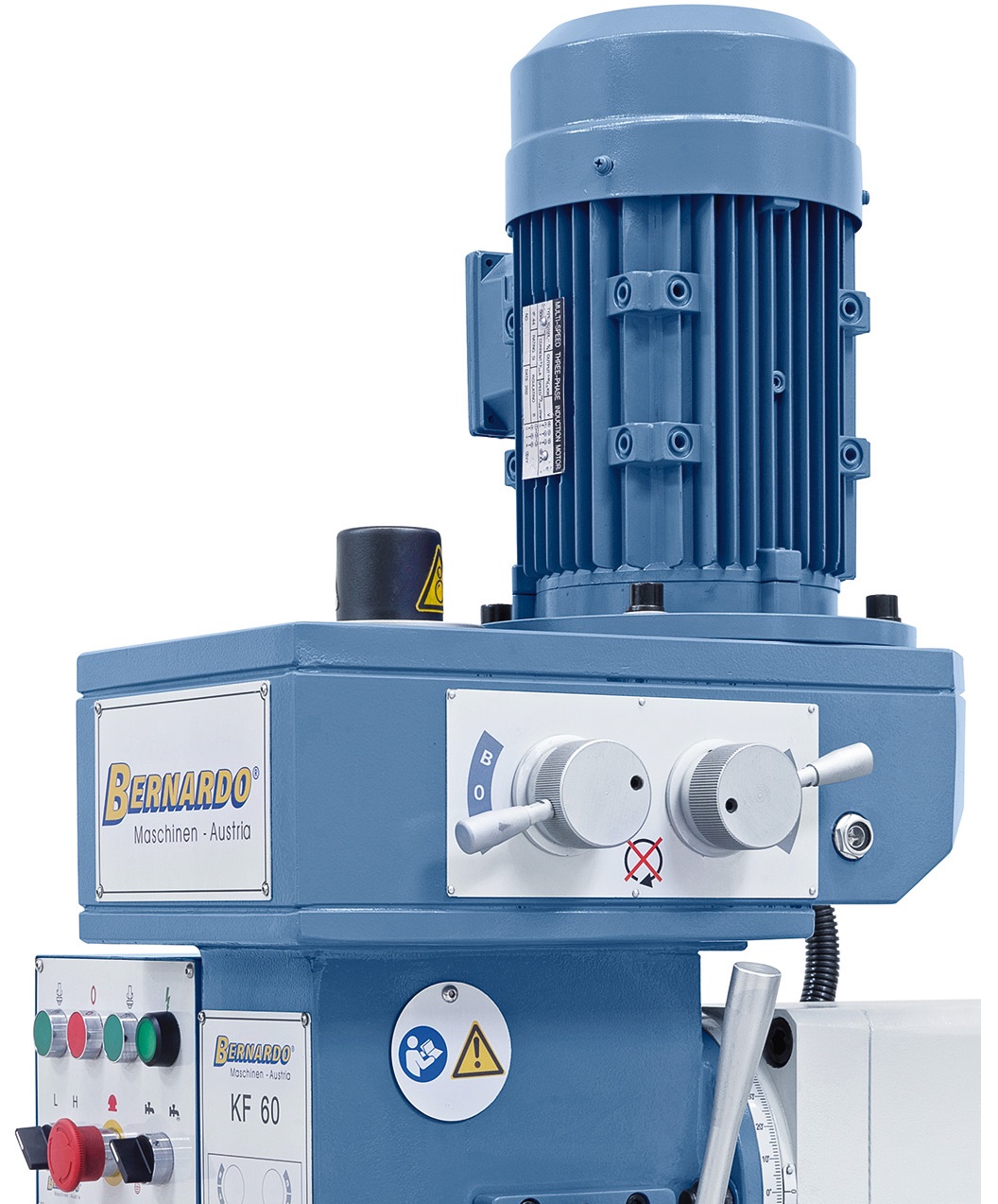 Vrtačko-frézka Bernardo KF 60 je robustní a univerzální stroj pro náročné obráběcí práce. Díky litinové konstrukci, masivnímu křížovému stolu, převodové hlavě s natáčením o 180° a digitálnímu odměřování ve 3 osách je ideální volbou pro přesné vrtání, frézování i řezání závitů. Stroj je vybaven automatickým posuvem v osách X a Y, chladicím systémem a řadou profesionálních funkcí, které zajišťují vysokou stabilitu, přesnost a komfort obsluhy.