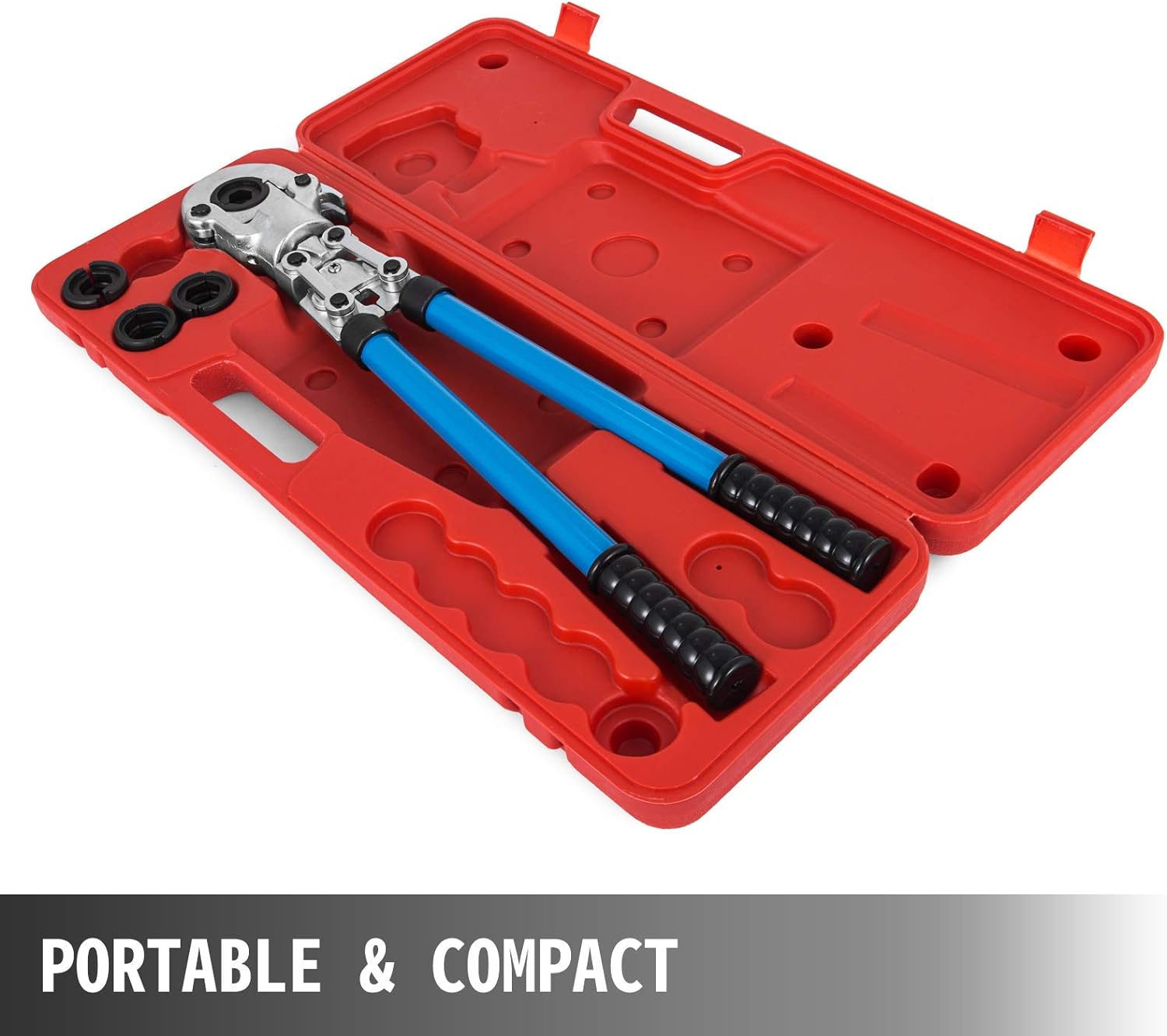 VEVOR lisovací kleště s otočnou hlavou o 360° + kufr + lisovací čelisti V12, V15, V22, V28, TH16, TH20, TH26, TH32 mm