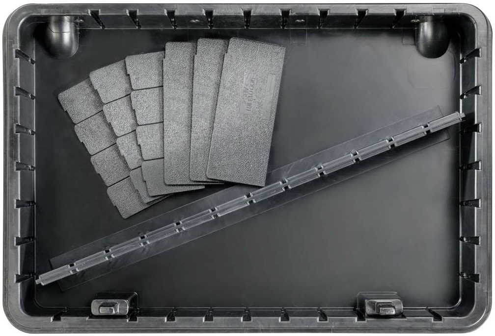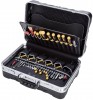 Servisní kufr pro rychlý servis počítačů. Moderní kufr s ochranou proti prachu a vodě, odolný proti poškrábání i poleptání kyselinou. Kufr je opatřen dvěma centrálními uzamykatelnými zámky a uspokojí i náročné uživatele. Plášť z nárazuvzdorné tmavohnědé lícované plastové skořepiny je opatřen eloxovaným hliníkovým rámem. Vč. ok pro připevnění popruhu. 65 různých nástrojů je prakticky uspořádáno ve dvou otočných, vyjímtelných panelech. Víko kufru je opatřeno přihrádkou na dokumenty, do které lze kromě papírových podkladů umístit i psací potřeby, diskety apod. Na dně kufru se nachází 60 mm vysoká plastová vložka s přepážkami pro náhradní díly, měřicí a pájecí nástroje atd.