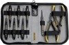 Malá sada nářadí pro práci s elektrostaticky ohroženými součástkami (ESD). Elegantní černé pouzdro z vodivého materiálu - umělé kůže, s uzavíráním na zip.