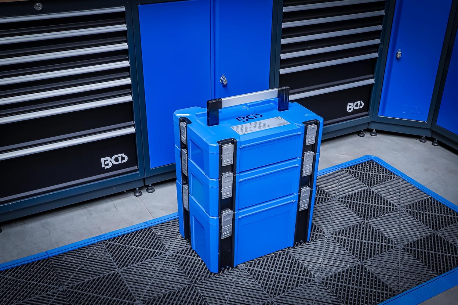 Systémový kufr BGS 80011 velikosti M je praktické a odolné řešení pro uskladnění i přepravu nářadí a strojů. Díky nárazuvzdornému ABS plastu a čtyřem zámkům se zástrčkou nabízí vysokou ochranu obsahu, zatímco hliníková rukojeť zajišťuje pohodlné přenášení. Kufr je kompatibilní se systémovými boxy BGS a umožňuje snadné stohování a spojování.
