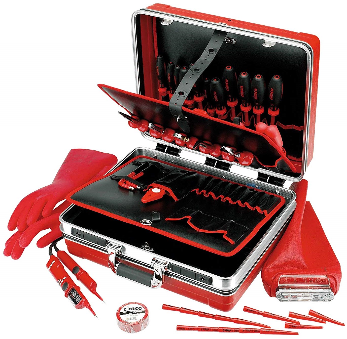 Obsahuje plastové ploché kleště c. 10 0796, kulaté kleště c. 10 8773, rovné telefonní kleště c. 10 8778, zahnuté telefonní kleště c. 10 8780, kombinované kleště VDE c. 10 8782, štípací kleště c. 10 8784, odizolovací kleště c. 10 8790, přidržovací šroubovák c. 11 0782, dtto c. 11 0784, dtto c. 11 0792, dtto c. 11 0794, úhlový šroubovák c. 11 0804, dtto c. 11 0806, Zkoušečka Napětí DUSPOL c. 11 1430, plochý šroubovák (ochranná izolace 1000 V) c. 11 7701, dtto c. 11 7704, dtto c. 11 7705, dtto c. 11 7706, dtto c. 11 7708, křížový šroubovák (ochranná izolace 1000 V) c. 11 7731, dtto c. 11 7732, dtto c. 11 7741, dtto c. 11 7742, šestihranný nástrčkový Klíč (ochranná izolace 1000 V) c. 11 7805, dtto c. 11 7807, dtto c. 11 7808, dtto c. 11 7810, izolovaný kabelový řezák Jokari c. 12 0008, kabelový řezák s rovnou čepelí c. 12 0042, kabelové nůžky c. 12 0206 lepicí pásku z PVC c. 14 0182, NH pojistkových držadlo c. 14 0210, elektrikářské ochrannou rukavici c. 14 0214, prázdný kufřík, c. 17 0070.