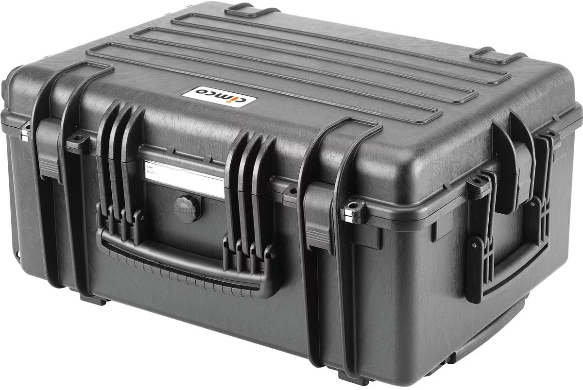 Robustní kufr z vysoce odolného plastu, voděodolný a prachotěsný dle IP67.