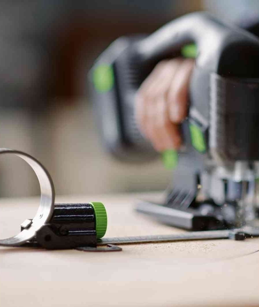 Vše po ruce, Systainer s příslušenstvím obsahuje různé pracovní desky, kružítko, úhlový stůl, adaptérový stůl a zábranu. Perfektní pomocník pro přímočarou pilu, abyste byli připraveni na všechna možná použití, vše čistě a kompaktně uložené v Systaineru3.