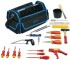 Vybaveno 22 většinou testovanými nástroji VDE (kleště VDE o výkonu 180 mm, boční štípací kleště VDE 160 mm, telefonní kleště VDE, rovné, 205 mm, plochý šroubovák VDE, 3,0 x 0,5 mm, plochý šroubovák VDE, 4 , 0 x 0,8 mm, plochý šroubovák VDE, 5,5 x 1,0 mm, šroubovák VDE Pozidriv, PZ1, VDE šroubovák Pozidriv, PZ2, VDE-Plus / mínus Pozidriv, Z1, VDE Šroubovák Pozidriv Plus / mínus, Z2, tester fáze s Kraftformem, jednopólový, VDE 0680 150V