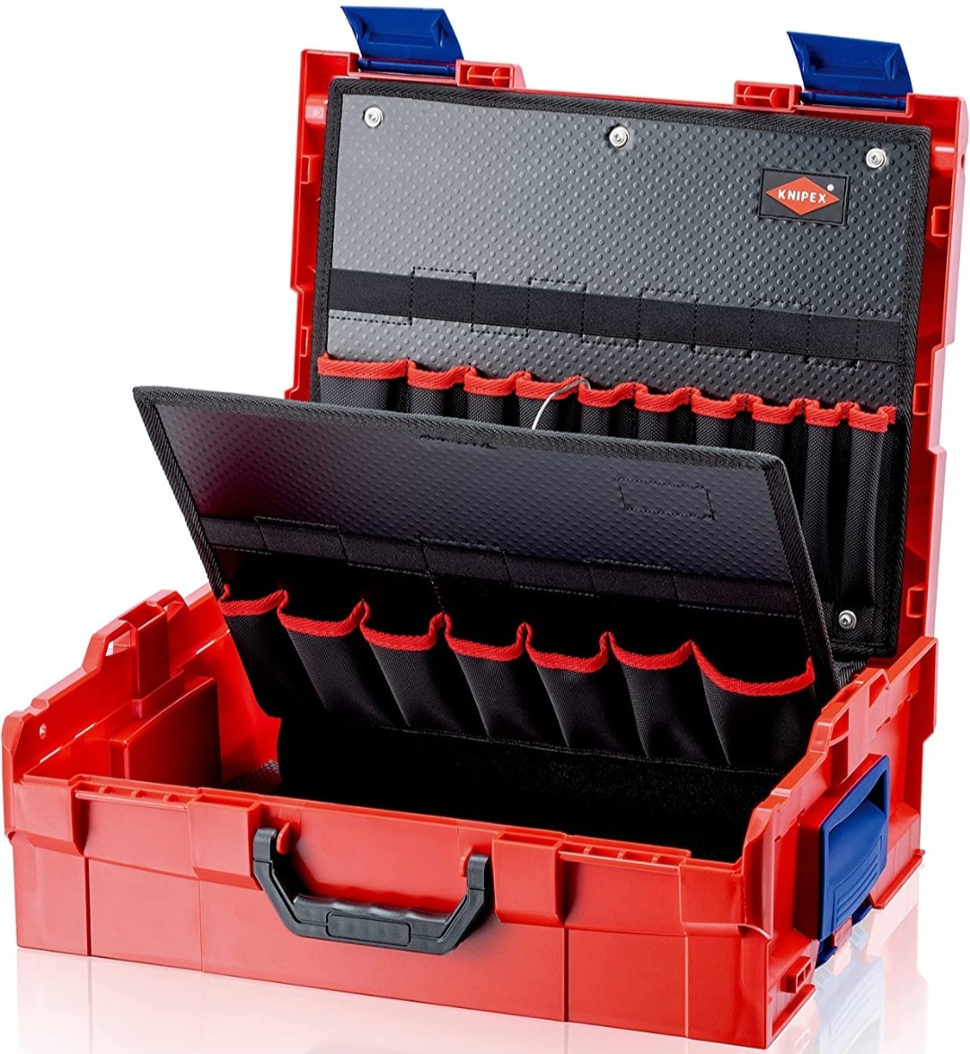 Spodní díl nahoře se 7 kapsami a klopou k zachycení karty nástrojů, dole se 7 kapsami a 7 elastickými oky