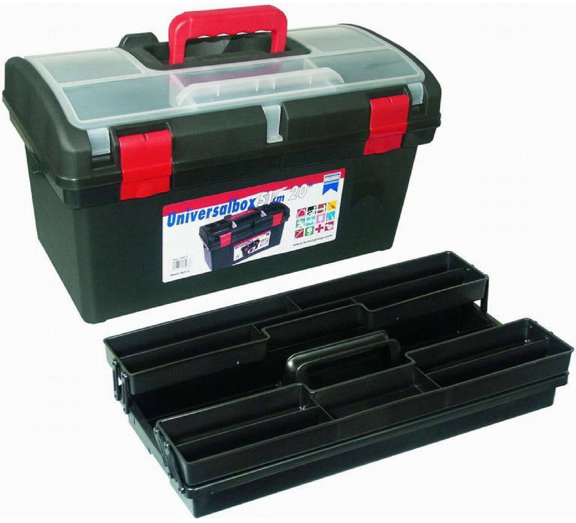 Praktický plastový kufr Smarty 44.1840 o délce 520 mm je určen pro přehledné a bezpečné ukládání nářadí, příslušenství nebo drobných součástek. Díky integrovanému vyjímatelnému zásobníku P1802 nabízí snadnou organizaci a rychlý přístup k nejčastěji používaným dílům. Robustní konstrukce z odolného plastu zaručuje dlouhou životnost i při častém používání v dílně nebo na stavbě.