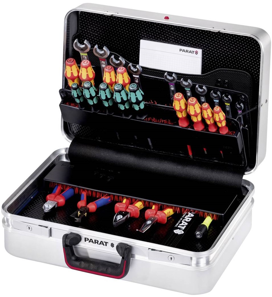Kufr na nářadí PARAT Classic Plus & Style s nástrojovou deskou CP-7 je vyroben z ušlechtilé a vysoce kvalitní hliníkové vnější vrstvy. Uvnitř kufru jsou robustní panely nástrojů z materiálu Con-Pearl® vybavené inteligentním držákem nástrojů CP-7 zajišťující dokonalý pořádek.