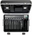 Díky PARAPROJECT® Case i10 lze 10 iPadů snadno uložit a přepravit v centrální nabíjecí a synchronizační stanici. Flexibilní systémové pouzdro nabízí prostor až pro 10 iPadů v 10 přihrádkách vyrobených z Con-Pearl®, které nabíjí a synchronizuje optimální rychlostí prostřednictvím centrální nabíjecí a synchronizační jednotky. Jeho USB porty umístěné v řadě umožňují čistou správu kabelů. Praktická technologie „Flex2Connect“ umožňuje vyměňovat nebo kombinovat nabíjecí a synchronizační kabely a typy zástrček. Kromě toho jsou k dispozici možnosti připojení pro hlavní notebook a pro příslušenství, jako je přístupový bod. Boční madla usnadňují přenášení a kombinované zámky chrání před neoprávněným přístupem. Jeho nízká hmotnost v kombinaci s konceptem 4 kol „EasyMove“ a teleskopickou rukojetí, kterou lze prodloužit až na jeden metr, činí manipulaci s kufrem obzvlášť pohodlnou. Odolný vnější plášť z ABS plastu odolného vůči UV záření v hliníkovém rámu poskytuje spolehlivou ochranu před vnějšími vlivy. Kromě sofistikované funkčnosti PARAPROJECT® Case i10 zaujme svým atraktivním designem a vysoce kvalitními materiály. Je kompatibilní se všemi generacemi iPadů od 4 Air a mini, kromě iPadu Pro 12,9 palce.