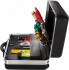 Integrovaný systém koleček s plynulým chodem a teleskopickou rukojetí zajišťuje pohodlnou přepravu kufru na nářadí z místa na místo.