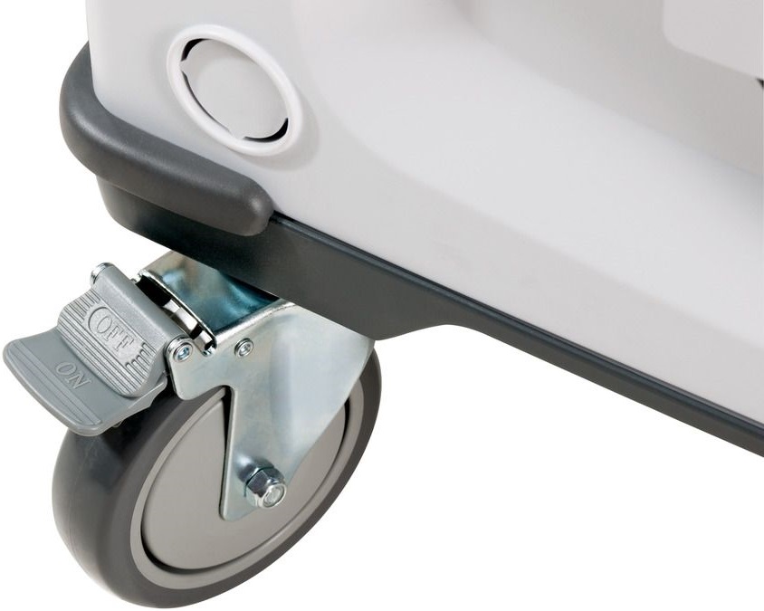 4x kolečka (průměr 12 cm), z toho dvě s parkovací brzdou pro bezpečnou manipulaci