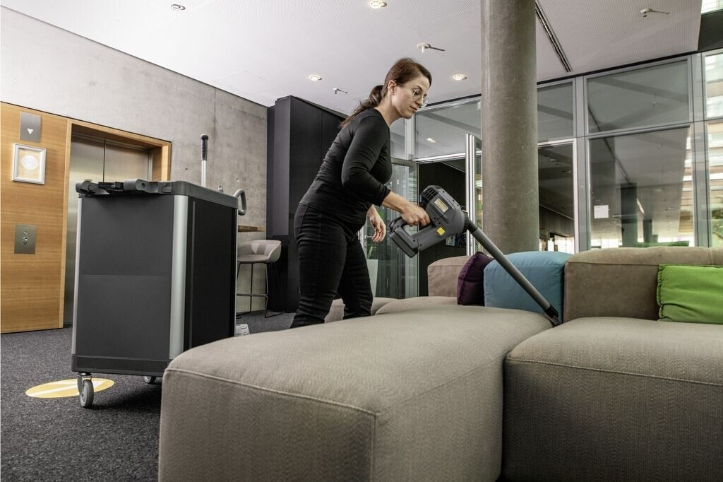 Kompaktní, uzavřený čisticí vozík FlexoMate ExpertPro 50/S C je díky své praktické velikosti ideální pro použití pro metodu čištění sprejem. Dva 6litrové kbelíky poskytují dostatek prostoru pro úhledné uložení čisticích pomůcek a jejich oddělení podle barev podle oblastí. Dvě 16litrové výsuvné zásuvky, které lze umístit podle požadavků, navíc poskytují dostatek úložného prostoru pro pohodlné přenášení dalšího vybavení a omezují zbytečné cesty tam a zpět. Pomocí dodaných přípojek FlexoLink lze mopové systémy a různé čisticí náčiní podle potřeby snadno připevnit na vnější stranu FlexoMate. FlexoLink XL lze v případě potřeby použít k připojení výstražného štítku nebo WVP 10 Adv. Dvě ze čtyř kol jsou opatřena brzdami. Ty zajišťují stabilní postavení a zajišťují vozík na místě i na nakloněném a nerovném povrchu. Díky ergonomicky tvarované a výškově nastavitelné rukojeti FlexoGrip se snižuje namáhání paží a ramen při tlačení vozíku. Dveře push-to-open lze navíc podle potřeby upravit pro praváky i leváky. Základní výbava, 2x 6l kbelík, 2x 16l šuplík, 1x přídavný zásobník, 1x odnímatelný díl 2x70L, 2x FlexoLink S, 1x FlexoLink XL.
