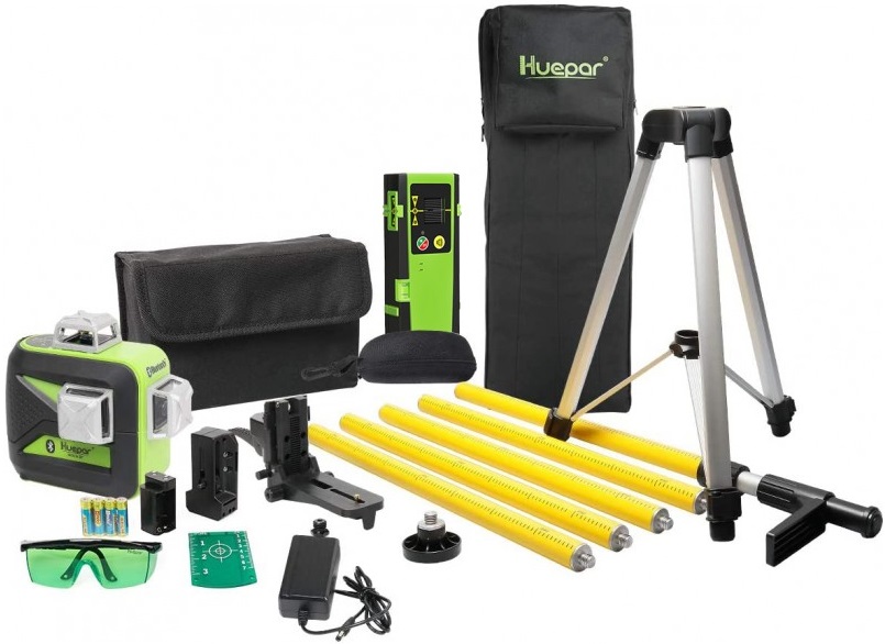 Huepar 603CG-BT křížový laser zelený 3D + LR6RG přijímač + 4 teleskopické tyče + stativ + brýle