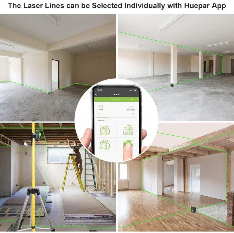 Viditelnost / jas laserového paprsku lze upravit připojením k aplikaci Huepar.