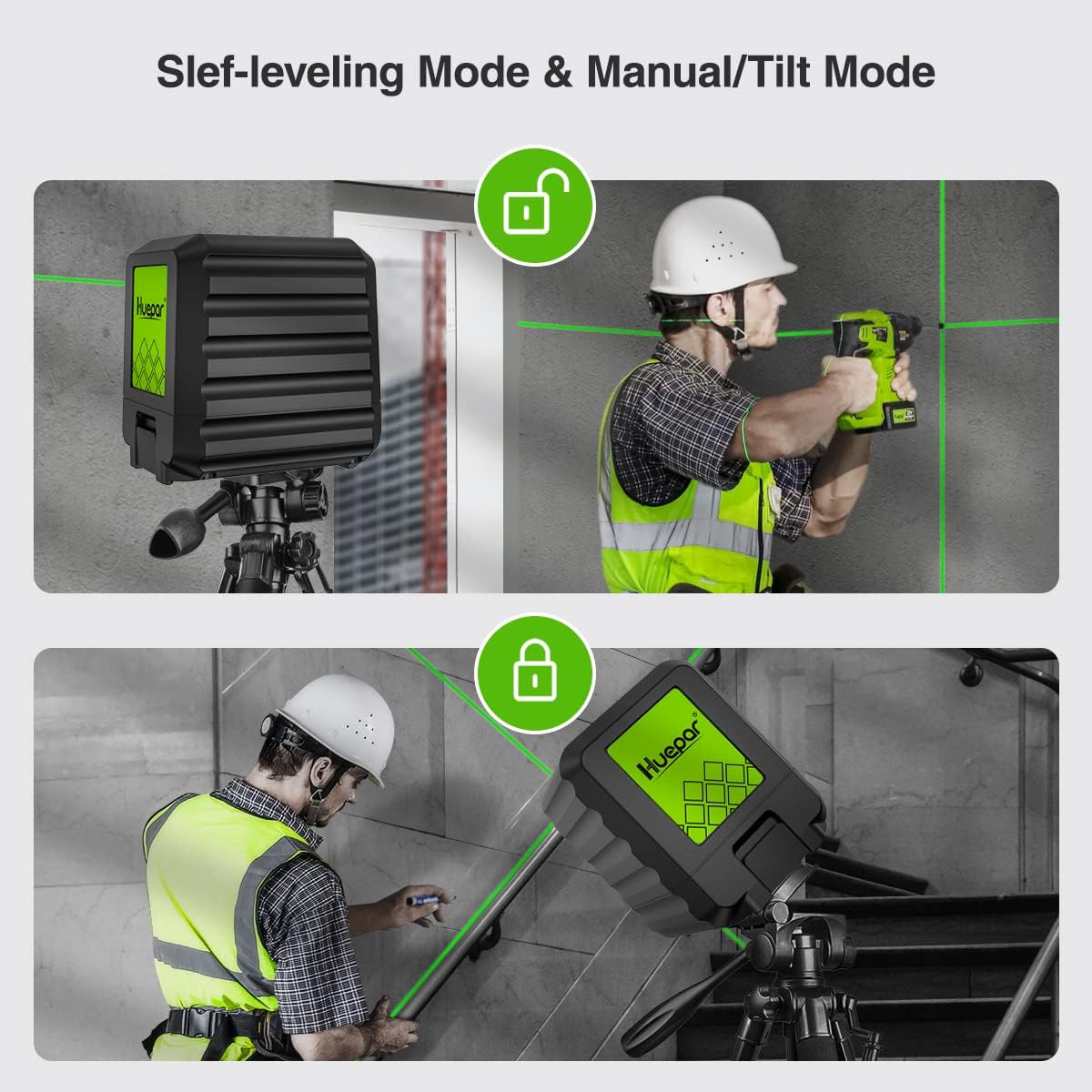 Splátkový prodej - Huepar B011G křížový laser se zeleným paprskem do 30 m, samonivelační