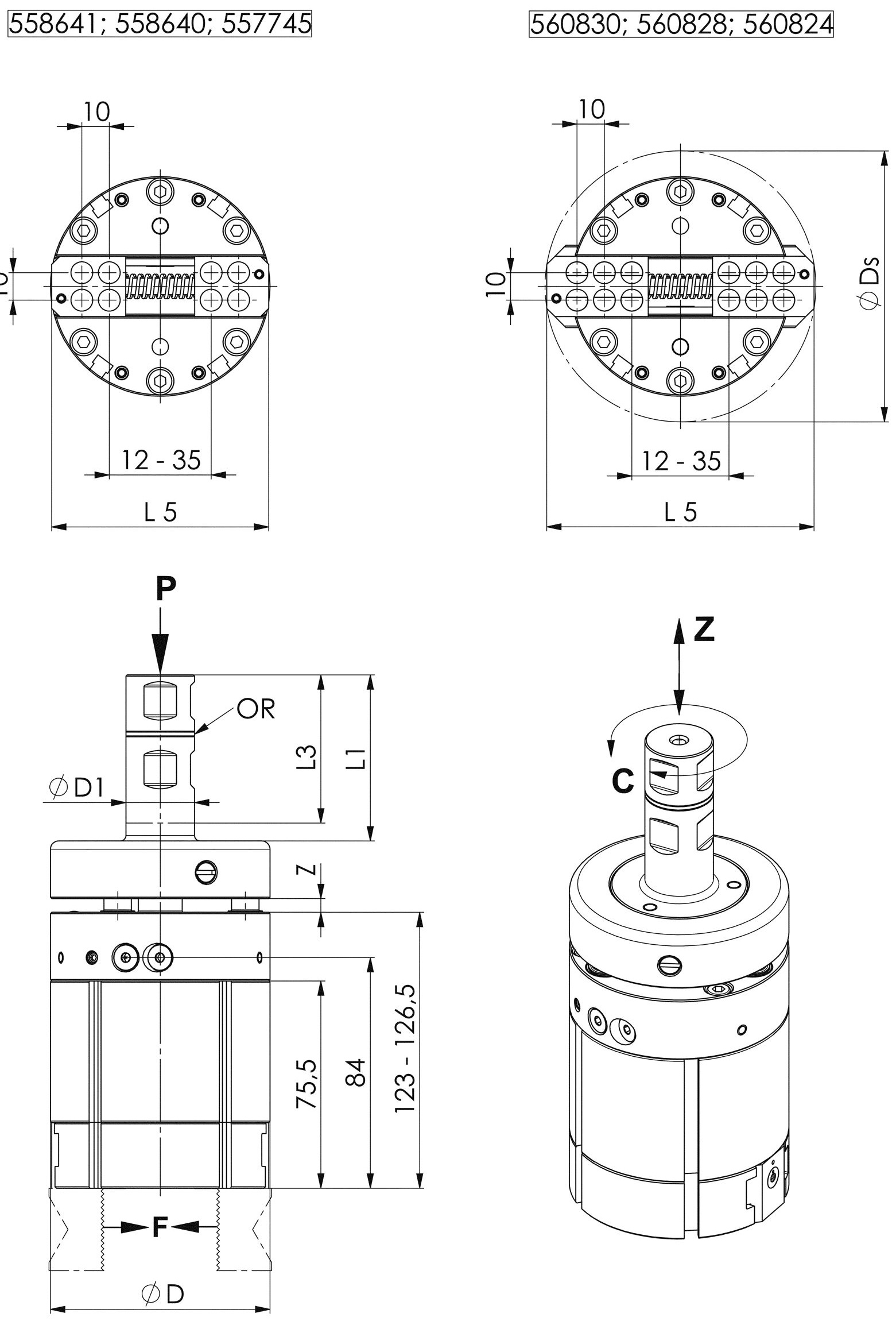 Dostupné varianty pro obrobky do maximální velikosti 50 mm nebo 70 mm