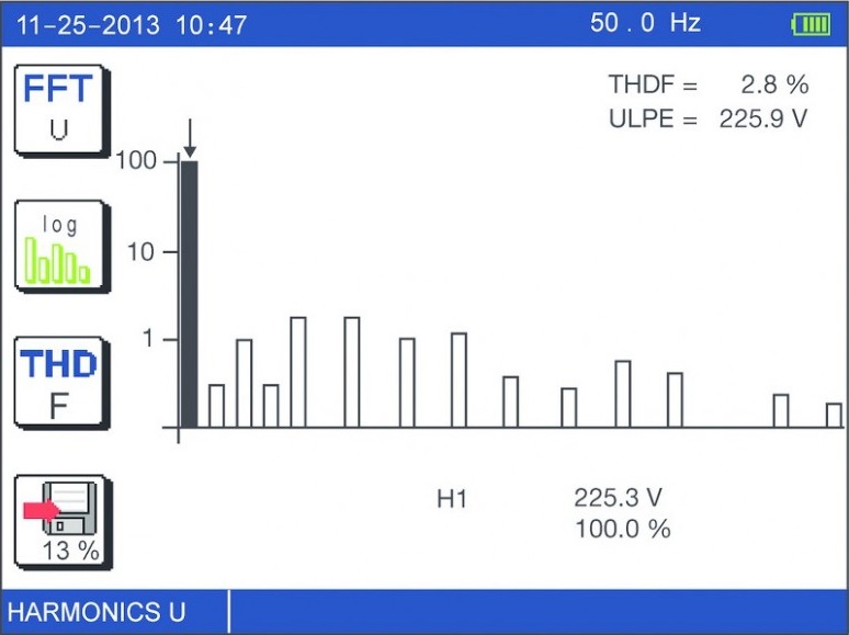 Analýza výkonu a harmonických do 50. řádu s klešťovým převodníkem C177A