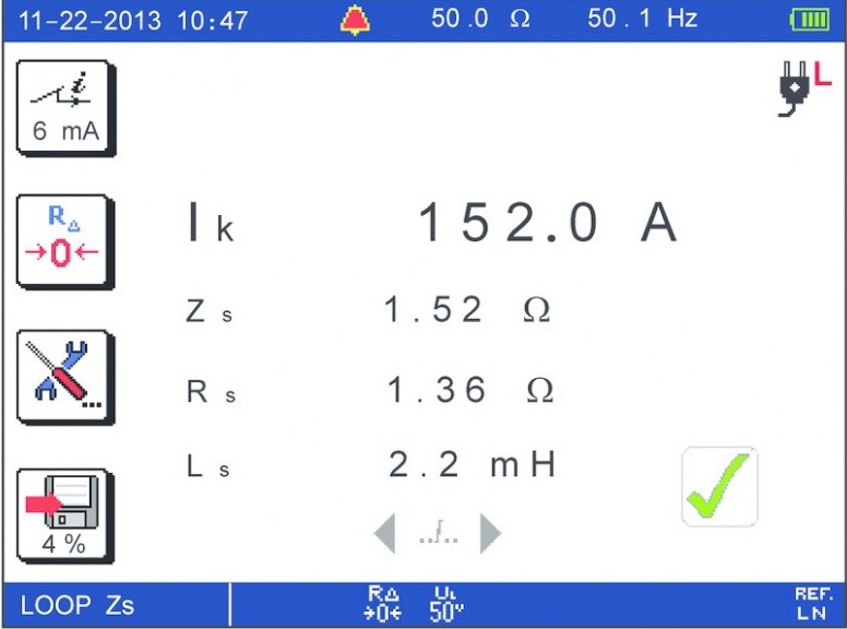 Měření impedance smyčky Zi a Zs s možností nastavení testovacího proudu