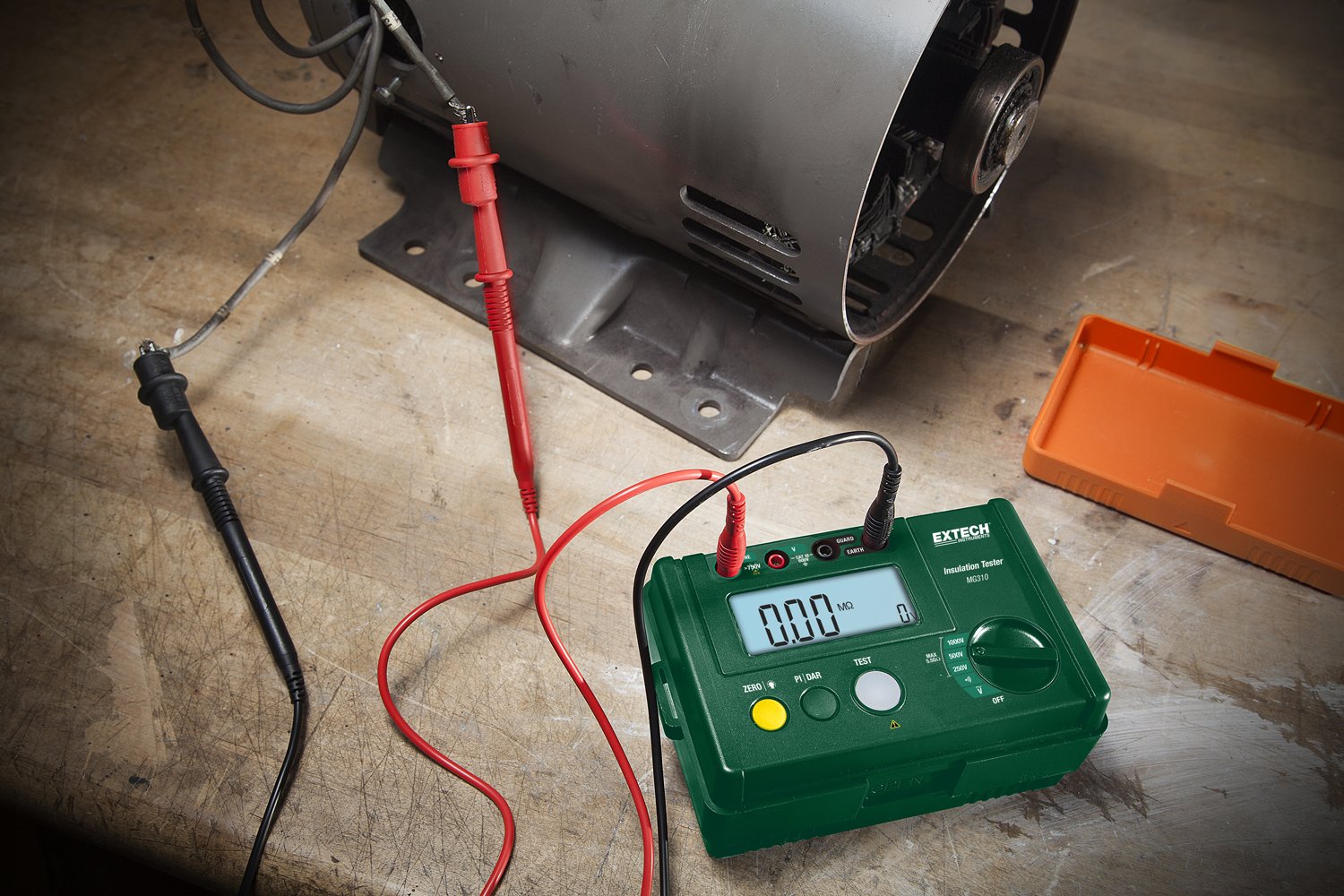Tester izolace, testovací napětí 250V / 500V / 1000V - rozsah měření do 5,5GOhm. Přechodové odpory RPE. Přídavné testy měření izolace PI a DAR.