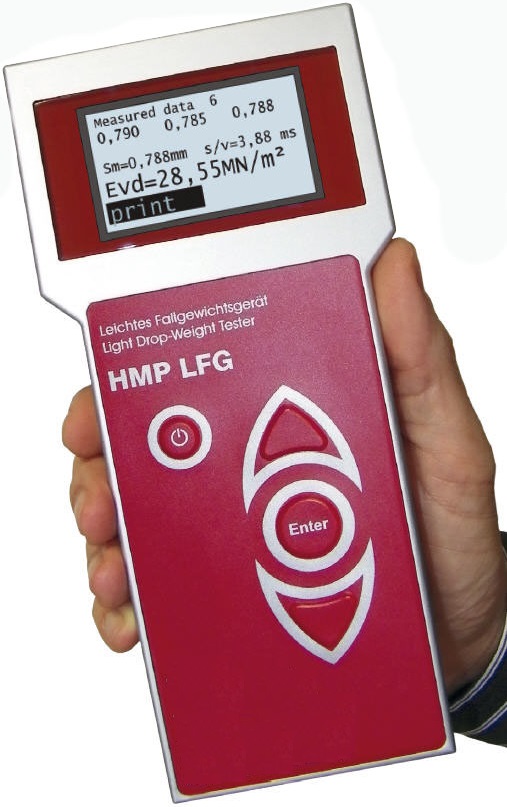 Lehká dynamická deska HMP LFG4 s tiskárnou je profesionální zařízení určené pro stanovení únosnosti a stupně zhutnění zemin, podkladních vrstev a zásypů. Umožňuje rychlé, přesné a opakovatelné měření přímo v terénu bez nutnosti opěrné konstrukce. Díky integrované termotiskárně lze výsledky ihned vytisknout a archivovat pro úplnou dokumentaci.