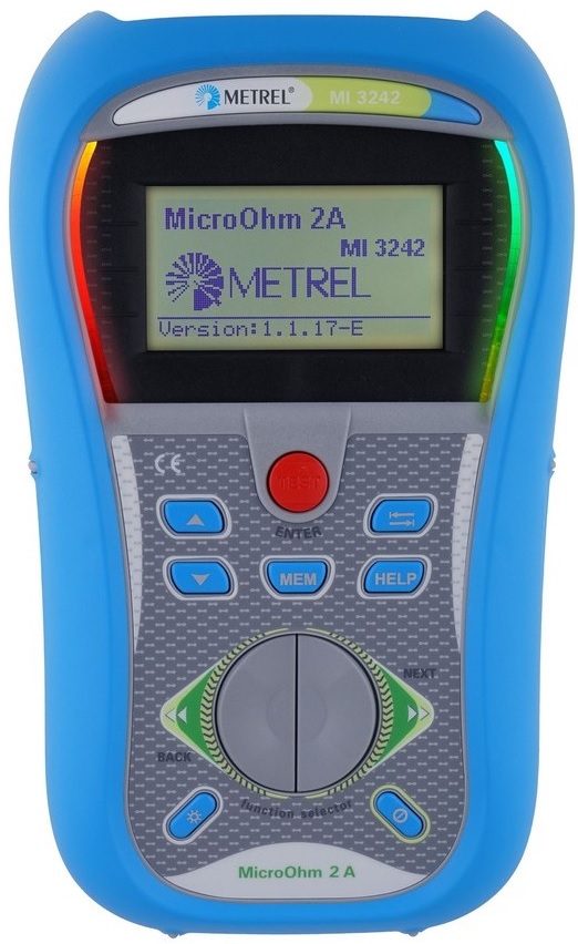 MI 3242 MicroOhm 2A je kompaktní mikroohmmetr od firmy Metrel. Umožňuje obousměrná měření malých odporů v rozsahu 1 μΩ ~ 199,9 Ω, s rozlišením 1 μΩ a přesností 0,25 %, proudem až 2A. Přístroj má vestavěnou ochranu obvodů proti nechtěnému připojení na síťové napětí, funkci detekce a odmítnutí 50 Hz / 60 Hz zvlnění, možnost nastavení horního a dolního limitu s pohodlným vyhodnocením "vyhověl / nevyhověl". MI 3242 MicroOhm 2A má bateriové napájení, vnitřní paměť až na 1500 výsledků měření včetně časového razítka. Dodávaný software PC SW HVLink PRO umožňuje naměřené hodnoty stahovat do počítače, vyhodnocovat, vytvářet zprávy, tisknout apod. Přístroj nabízí i režim měření v induktivním režimu - vhodné pro měření odporu vinutí motorů, generátorů, transformátorů, tlumivek apod. V režimu měření odporu je vhodný příkladem použití např. kontrola přechodového odporu spínačů, jističů, konektorů, sběrnic apod. MI 3242 MicroOhm 2A měří i napětí do 550 V a frekvenci do 100 Hz. Přístroj má grafický displej s podsvícením a s rozlišením 128 x 64 bodů, komunikační rozhraní RS232/USB, rozměry 140 x 80 x 230 mm a hmotnost 0,8 kg.