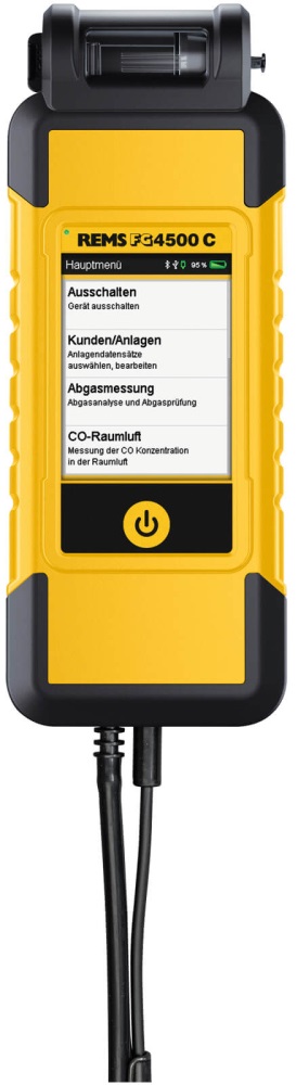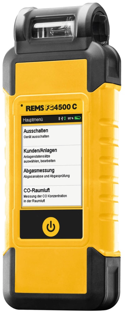REMS FG4500 C je kompaktní, lehký a výkonný analyzátor spalin určený pro servisní a revizní techniky. Přístroj je schválen dle DIN EN 50379 část 1 a 3 a je vhodný pro měření spalin u plynových a olejových topidel. Díky funkci Connected umožňuje bezdrátový přenos dat přes Bluetooth do mobilní aplikace i kabelové propojení přes USB do PC. Robustní konstrukce, intuitivní dotykový displej a nízká hmotnost z něj dělají ideální nástroj pro každodenní profesionální použití.