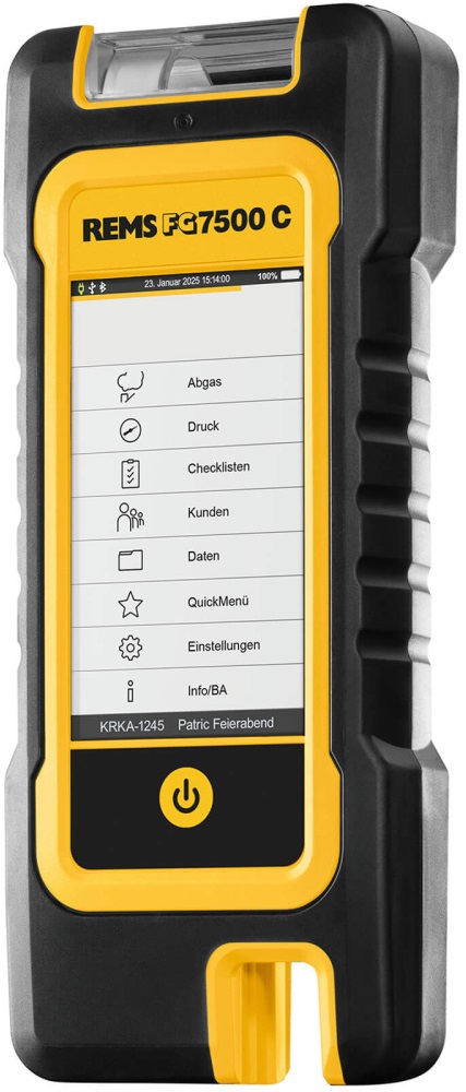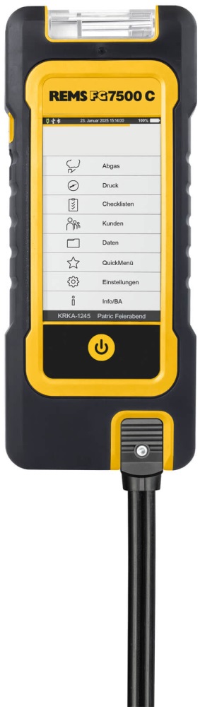 REMS FG7500 C je profesionální elektronický analyzátor spalin a tahu určený pro měření parametrů spalování topných systémů, včetně měření nařízených zákonem. Přístroj je schválen dle DIN EN 50379 část 1 a 2 a je vhodný pro servisní, revizní i kontrolní činnosti u plynových a olejových topidel. Díky funkci Connected umožňuje bezdrátový přenos dat přes Bluetooth i kabelové propojení s PC přes USB. Robustní konstrukce, integrované magnety a pokročilé měřicí funkce z něj činí ideální nástroj pro profesionální použití.
