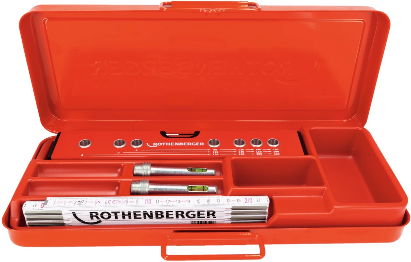 Profesionální montážní sada nástrojů Rothenberger ROCHECK pro přesné usazení patic armatur, nástěnek baterií a rohových ventilů