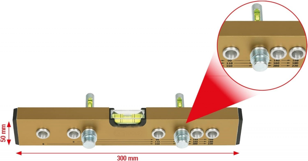 1x horizontální vodováha ROCHECK pro normovaný odstup 300 mm