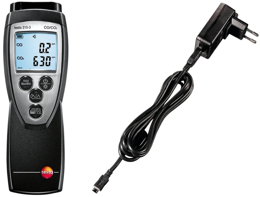Špičková technika, jednoduchá manipulace, robustní provedení: to je testo 315-3, přístroj pro měření CO/CO2 v okolí. Změříte s tímto přístrojem paralelně kysličník uhelnatý a kysličník uhličitý v okolí otopných zařízení a ventilačních výustek. Výsledky měření můžete odečítat přímo na digitálním displeji. Při překročení hraničních hodnot – hraniční hodnoty si můžete libovolně nadefinovat – vydává přístroj pro měření CO/CO2 alarm, jak optický, tak také akustický.
